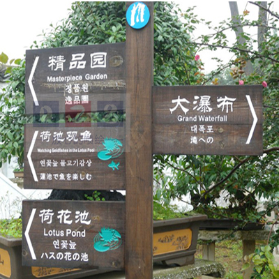 指示牌與場所標(biāo)識牌。而這是互相配合的,對必須標(biāo)識的場所進行標(biāo)識,有利于提高景區(qū)的服務(wù)效率。
